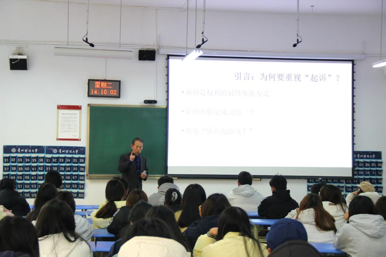 (法学院 黄遥 报道|摄影 李嘉琪)为切实增强校院师生对民事案件诉讼流程的理解与运用能力,11月25日,贵州财经大学法学院法律事务俱乐部特邀法学院关工委委员、退休老教师慕德鸣开展“民事起诉实务——从纠纷到立案的全流程指引”专题讲座,吸引了全校120余名师生积极参与。