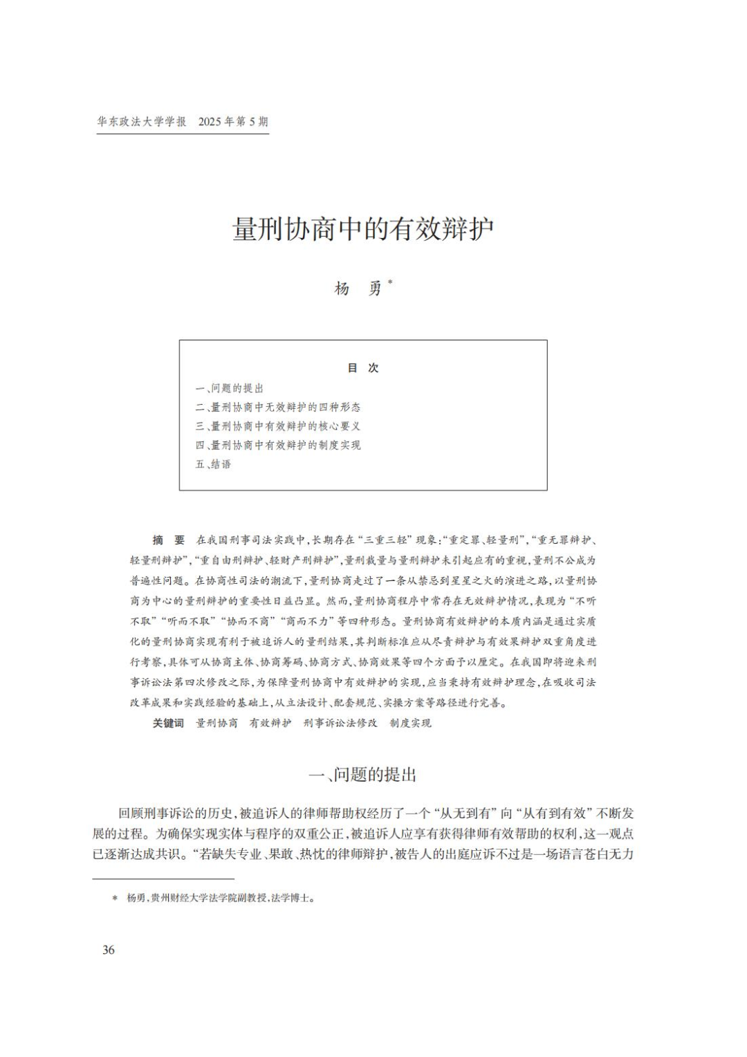 《量刑协商中的有效辩护》全文24000余字,发表于《华东政法大学学报》2025年第5期。《华东政法大学学报》是CSSCI来源期刊、CLSCI来源期刊、全国高校权威社科期刊。其最新复合影响因子为9.452,综合影响因子为5.566。