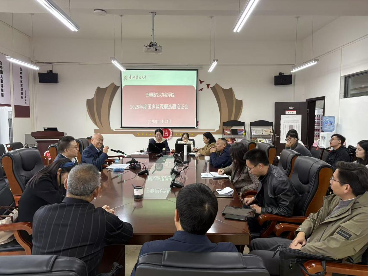 10月24日下午,贵州财经大学法学院在文德楼310会议室举行2026年度国家级课题选题论证会。学院特邀四川大学二级教授、博士生导师周伟到场辅导。法学院副院长(主持工作)曹务坤、副院长宋昭澜出席会议,二十余位拟申报教师及部分青年教师代表参加。会议由宋昭澜主持。