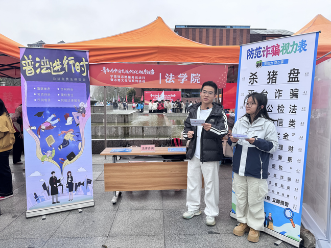 为深入弘扬雷锋精神,践行 “奉献、友爱、互助、进步” 的志愿理念,充分发挥法学专业优势,3月5日,法学院组织40余位青年志愿者积极参与“青春为中国式现代化挺膺担当”学雷锋志愿服务活动月暨志愿文化节系列活动启动仪式,同步在帐篷点位开展法制宣传、反诈宣讲、法律咨询三位一体志愿服务活动,以实际行动诠释新时代法律人的责任与担当。