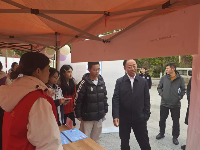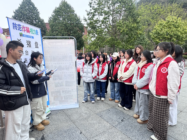 由学院主持队甘业翰、曾新雨两名同学组成的反诈宣讲小队用生动案例、通俗语言开展现场宣讲,聚焦校园贷、刷单返利、冒充客服等高发骗局,拆解诈骗套路、普及防范知识,以沉浸式宣讲增强群众反诈意识,赢得现场一致好评。期间,校党委副书记唐本文一行亲临活动现场,认真聆听了反诈宣讲,对宣讲小队通俗易懂的宣讲方式、贴合群众的宣讲内容给予充分肯定和高度好评,他指出,此次反诈宣讲立足法学专业特色,紧扣群众需求,既普及了反诈知识,又展现了青年学子的责任担当,希望同学们持续发挥专业优势,让法治宣传更接地气、更有温度。