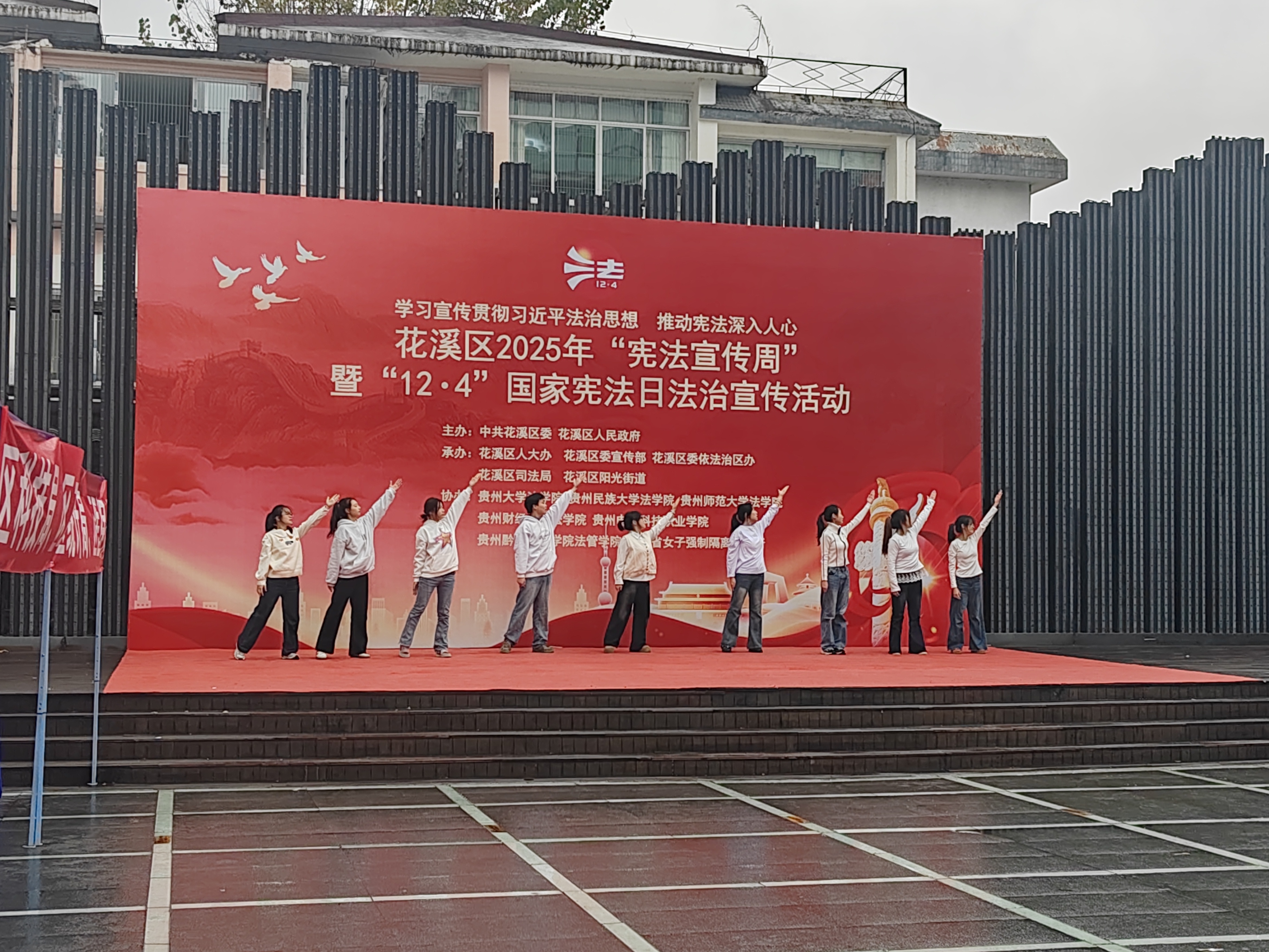 2025年12月4日,我国第十二个国家宪法日当天,花溪区十字街社区清华广场人头攒动、暖意融融。由中共花溪区委、花溪区人民政府主办,花溪区司法局人大办、花溪区委宣传部、花溪区委依法治区办、花溪区司法局、花溪区阳光街道承办,贵州财经大学法学院等6所高校协办的"学习宣传贯彻习近平法治思想,推动宪法深入人心"国家宪法日法治宣传活动在此隆重举行。