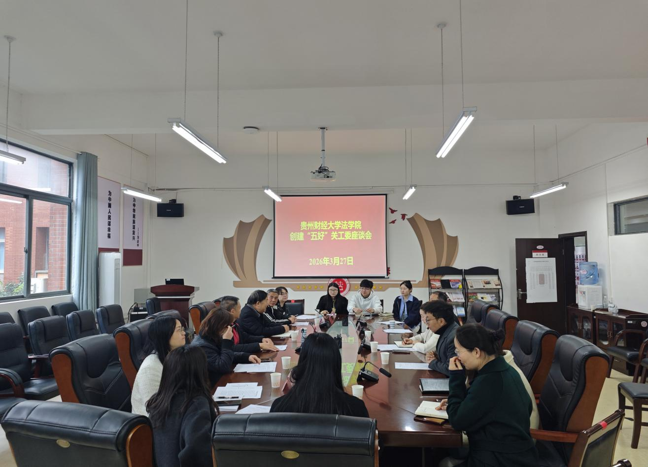 (法学院 严梓芸 报道|摄影 李观正)3 月 27 日上午,法学院 “五好” 关工委创建工作评审会在文德楼 A8-310 会议室召开。校关工委常务副主任杨勇到会指导并讲话,校关工委副主任游本强,会计学院党委副书记、关工委副主任黄忠莉,艺术学院党委副书记、关工委秘书长吴忠军及校关工委相关工作人员组成评审组开展评审工作。法学院党委书记、院关工委主任邵新顺,院党委副书记、院关工委副主任彭华,院关工委委员慕德鸣,学院各科室负责人、团委负责人、关工委工作人员及学生代表参加会议。会议由彭华主持。