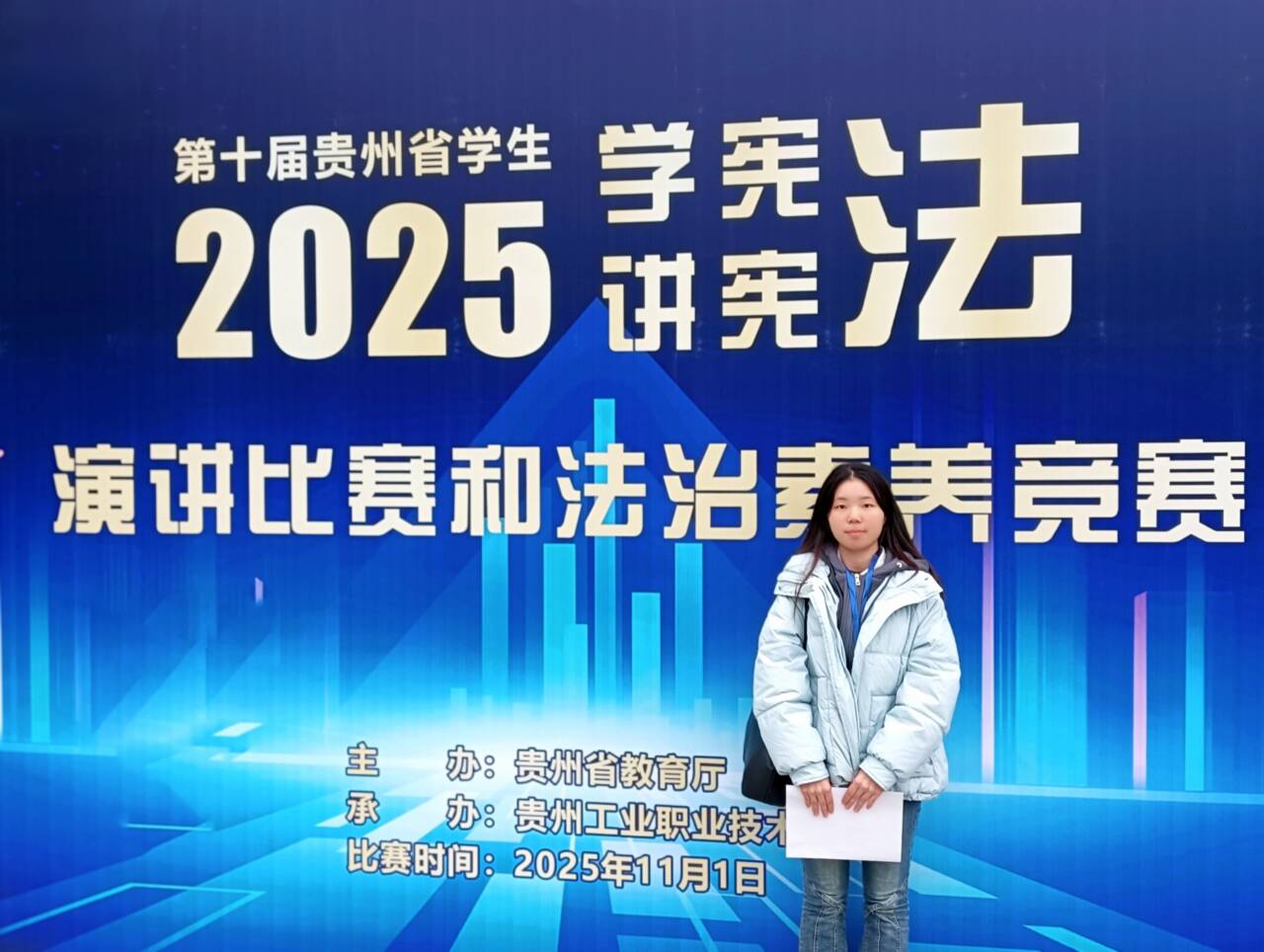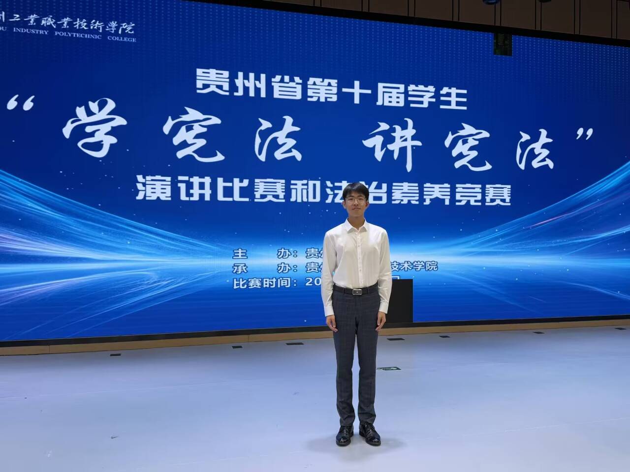 近日,贵州省第十届“学宪法讲宪法”演讲比赛和法治素养竞赛在贵州工业职业技术学院圆满落幕。来自全省各高校、中小学的数百名选手齐聚一堂,围绕宪法精神、法治理念展开激烈角逐。其中,我校法学院张丹丹同学凭借扎实的宪法知识功底荣获法治素养竞赛一等奖,西密歇根学院焦瑞图同学凭借出色的演讲表现力以及深厚的法治素养斩获演讲比赛一等奖。